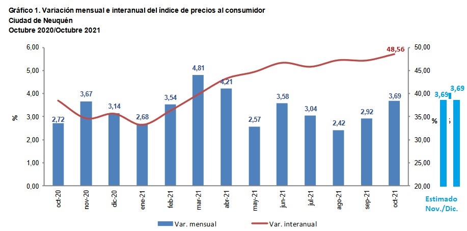 No obstante, no está claro cómo se tomaron las cifras. De acuerdo a la Dirección de Estadísticas y Censos de Neuquén el acumulado del año 2021 (al 31 de octubre) es 38.93%. Cabe recordar, que el aumento para el primer semestre 2022 es el IPC Neuquén del primer semestre del año 2021 y para el segundo semestre 2022, es el período julio-diciembre 2021.